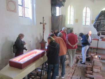Trotz der umfangreichen Bauarbeiten präsentierte die Kirche zu Groß Trebbow heute ihre Kostbarkeiten. Mehr als 70 Besucher bestaunten die Fundstücke und stellten den Vertretern des Fördervereins ihre Fragen.