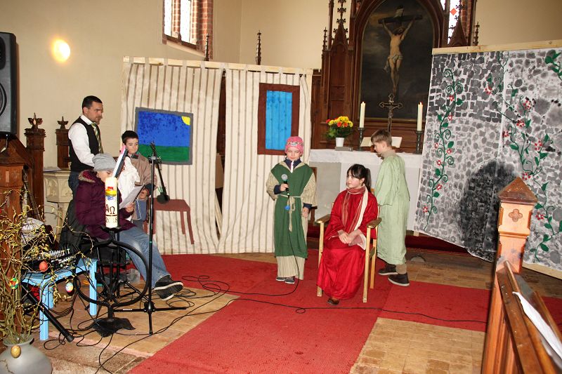 Ostern ist das älteste christliche Fest und wird zum Gedächtnis des Todes und der Auferstehung von Jesus Christus gefeiert. Dazu veranstaltete unsere Kirchengemeinde am Ostersonntag einen Familiengottesdienst in der Kirche zu Alt Meteln. Um die biblische Geschichte zu verdeutlichen, gestalteten Mädchen und Jungen ein kleines Theaterstück über das Leben, Sterben und Auferstehung von Jesus. Die Requisiten, Kulissenbilder und Kostüme wurden von den Kindern selbst angefertigt.