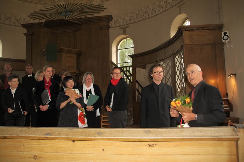 ...zum Konzert geistlicher Chormusik lud die Kirchgemeinde Alt Meteln-Cramon-Groß Trebbow in die Kirche zu Zickhusen ein. Die Sängerinnen und Sänger der Kirchengemeinde und der Schelfgemeinde Schwerin sangen unter der Leitung von Steffen Höschele und der musikalischen Begleitung der Pianistin Yuko Ellinger wunderschöne fließende, neugeistliche Melodien auf deutsch und englisch. Unter dem Motto: "Finde Zeit für deine Seele" kamen die gut kombinierten Werke von Siggy Hänger, John Rutter, Matthias Selke und und anderer bekannter Komponisten verschiedener Epochen gut an.