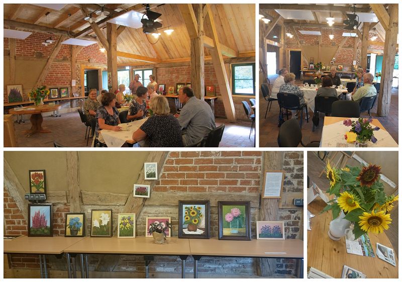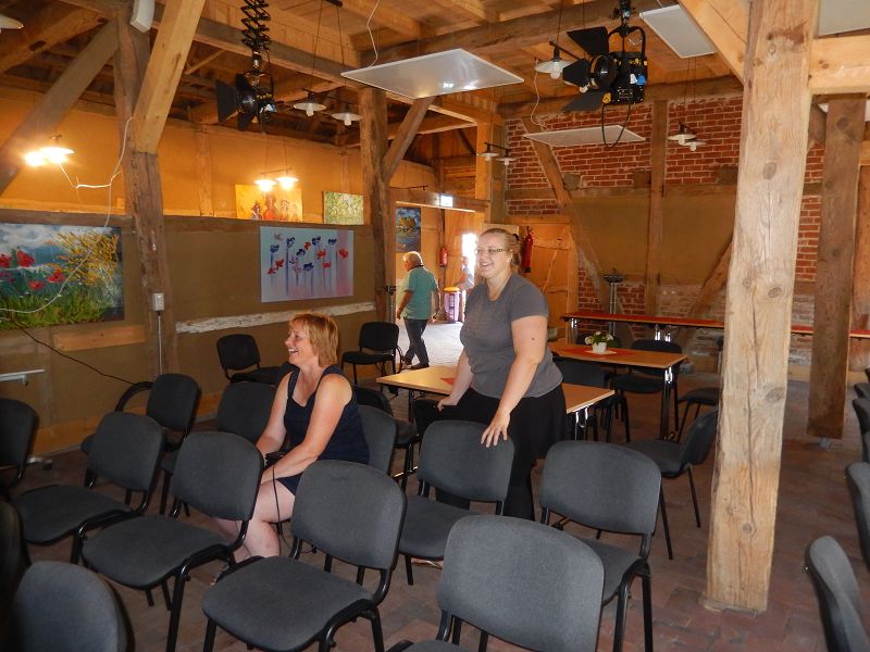 Viele Leute aus der Umgebung Cramons und Gäste haben in der Scheune das Angebot "Kaffee, Kuchen & Bilder"genutzt. Sie konnten in kühler Atmosphäre Kaffee und Kuchen genießen und die Bilder von Dorothea Thiele betrachten. Familie Eggemann betreute die Besucher am ersten Wochenende, sieben Frauen der Frühstücksrunde Cramonshagen waren von Dienstag bis Donnerstag für alle Gäste da.