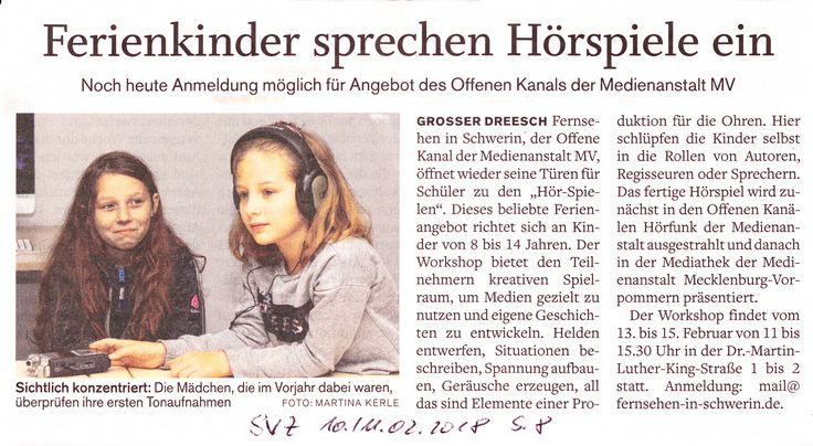 11.02.2018Ferienspaß - auch eine schöne Aufgabe für die Hörspielscheune
