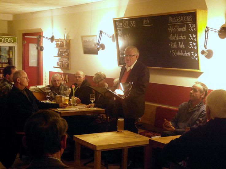 Das Publikum dankte dem Vorleser mit großem Beifall und genoss den unterhaltsamen Abend in der gemütlichen Atmosphäre des Hofcafés Medewege.