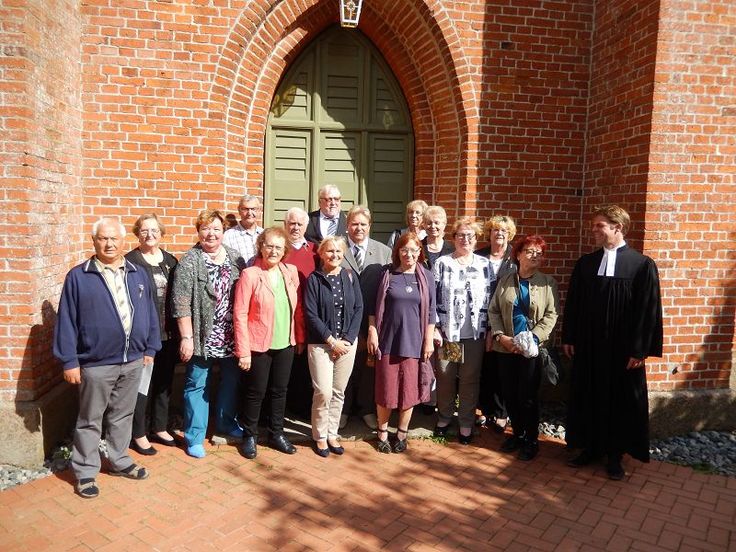 Die "Goldenen" und Pastor Seefeld nach dem Gottesdienst. Die Damen und Herren hatten ihre Konfirmation 1968 bzw. 1969 in der Kirche zu Cramon gefeiert.