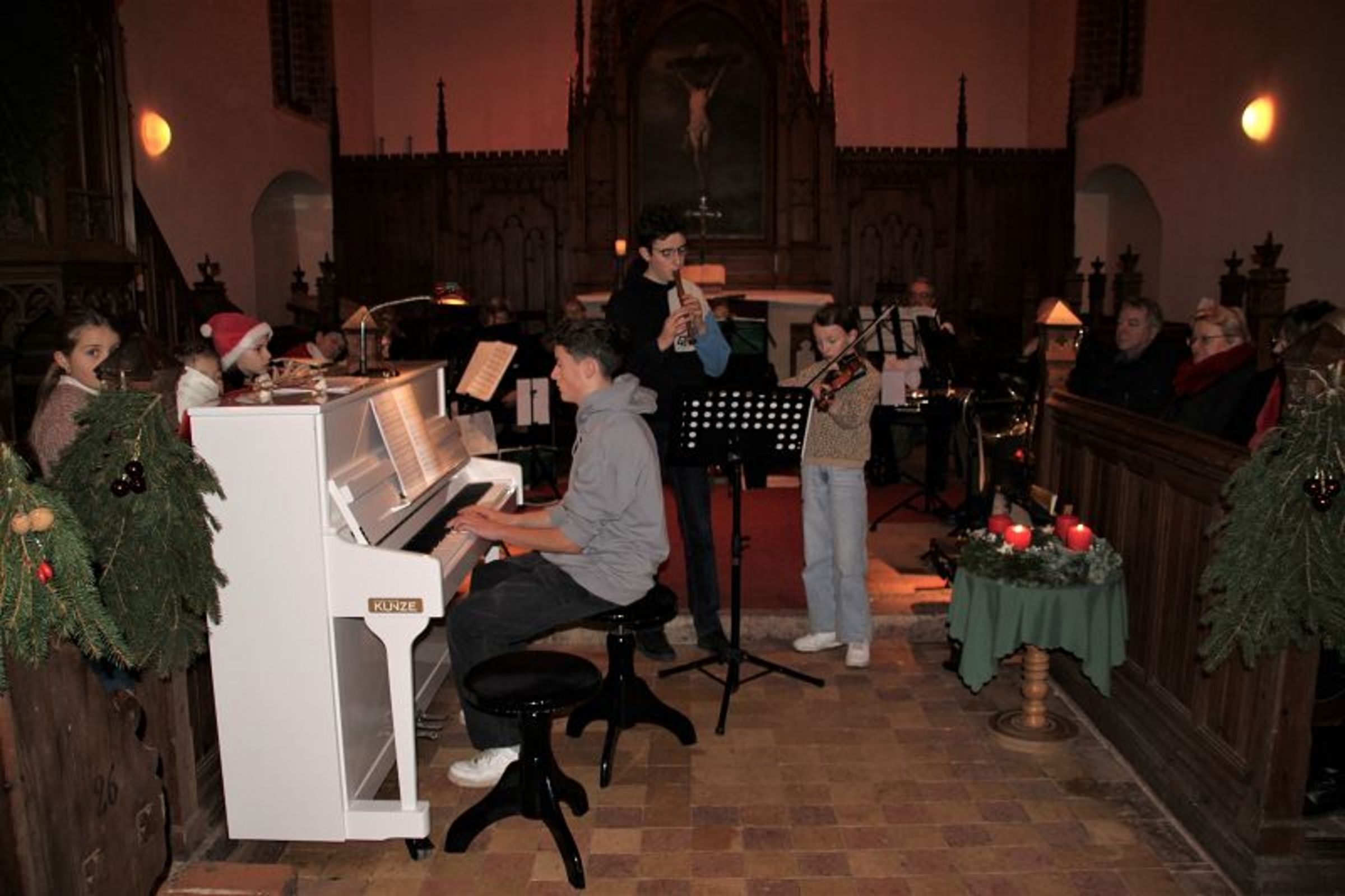 Eine schöne Weihnachtsstimmung, mit vielen Akteuren erlebten die Gäste zum 3. Advent in der Kirche zu Alt Meteln.. Fast alle, die in unserer Gemeinde musizieren, spielten oder sangen Lieder zum Fest. Darunter war der Posaunenchor unter der Leitung von Gundula Lange, der Erwachsenenchor, unter der Leitung von Melinda Hammerich, Geigenbauerin Dörte Monian, die wunderschön auf der Geige spielten, kleine Musikschüler, die gemeinsam mit Melinda Hammerich Geige und Klavier spielten sowie die Geschwister Ole, Karl und Elise Iven, die als Trio mit Flöte, Geige und Klavier Weihnachtssongs spielten. Natürlich konnten auch die begeisterten Gäste singen und Pastor Markus Seefeld las eine humorvolle Geschichte zum Fest vor. Durch das Programm führte Dirk Hammerich.