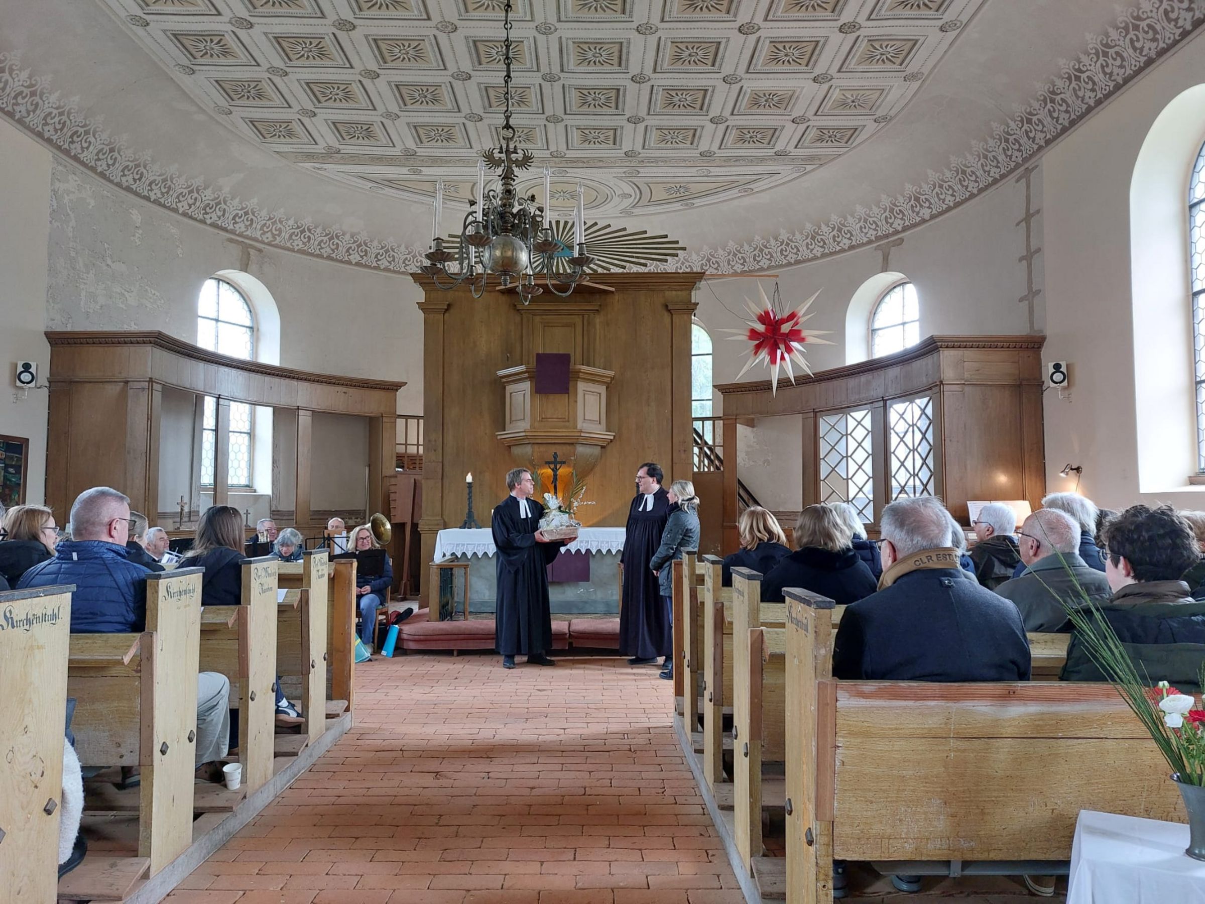 Bläserchor und Chor der Kirchengemeinde gaben dem Gottesdienst am Palmsonntag einen sehr festlichen Rahmen. Am meisten aber dürfte Conrad die Tatsache gefreut haben, dass es in der Kirche zu Zickhusen kaum noch einen freien Platz gab: Viele Gemeindeglieder waren gekommen, um unseren Vikar nach gut zwei Jahren der Arbeit zu verabschieden. Alle Prüfungen gut bestanden, jetzt winkt die eigene Pfarrstelle in Malchow. Pastor Seefeld erinnerte nocheinmal, an wie vielen Stellen in der Gemeinde sich Conrad in den vergangenen 2 Jahren eingebracht und es durch seine gute Arbeit und sein aufrechtes Auftreten in die Herzen der Frauen, Männer und Jugendlichen geschafft habe. Conrad habe ruhig zugehört, viel organiert und zur rechten Zeit ein gutes Wort gesprochen. Conrad Witt selbst bedankte sich bei der Gemeinde für die gute Ausbildung und die Unterstützung, die ihm überall zuteil wurde.