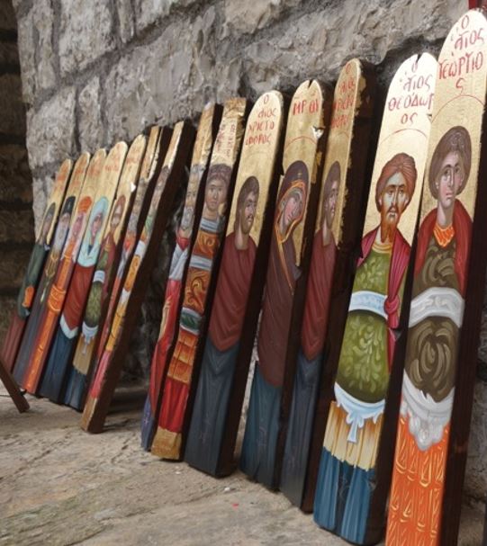 Die orthodoxen Kirchen verehren durch die Ikonografie diese Vorbilder des Glaubens. In einem griechisch-orthodoxen Kloster, am Fuße des Olymps, fand ich eine berufene Ikonenmalerin.