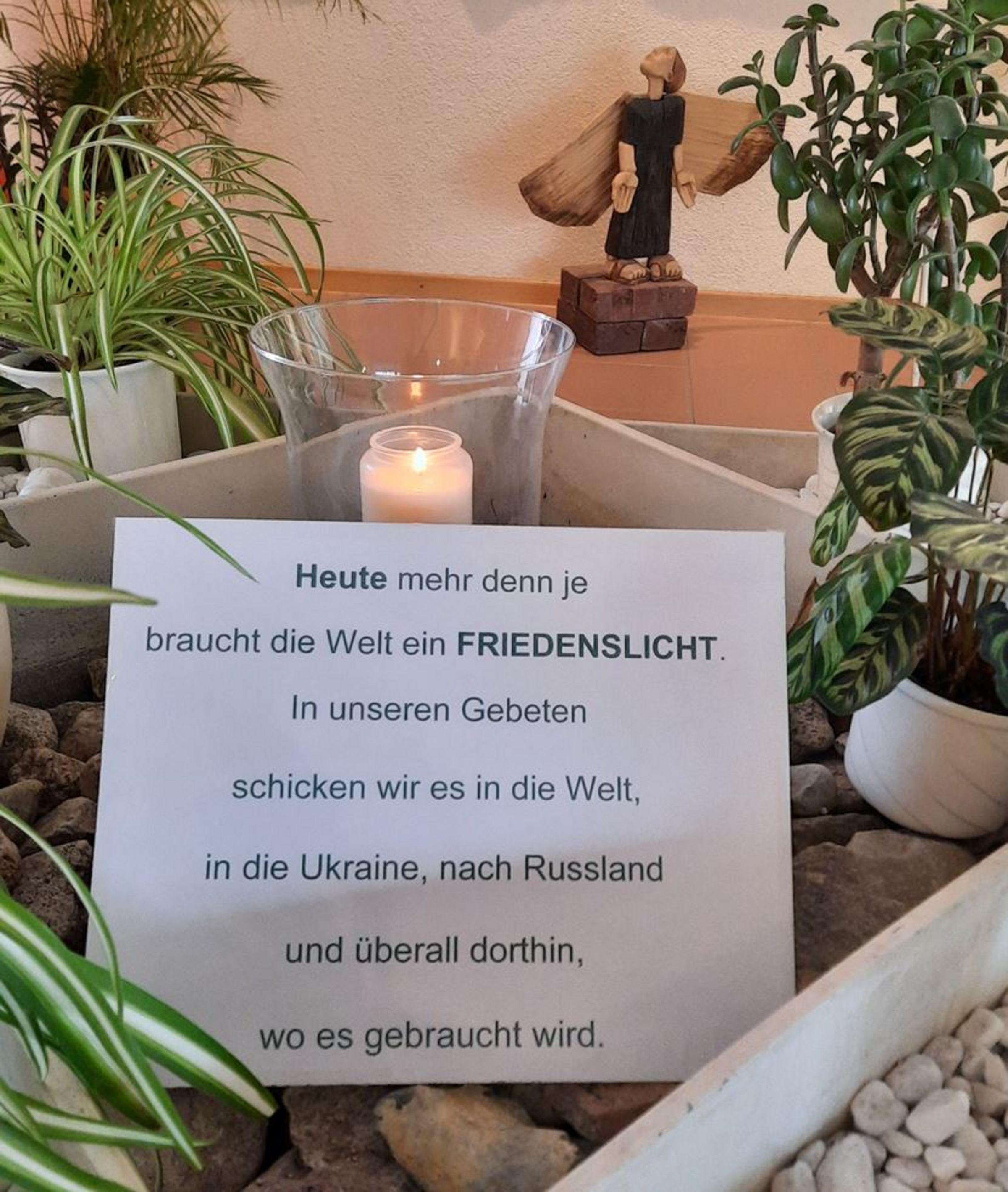 Seit dem 24. Februar brennt im Foyer des Ev. Altenzentrums der Stiftung Stralsunder Schwestern-heimathaus eine Friedenskerze und ruft zum Innehalten und Beten auf. Wir müssen mit dem für uns geographisch nahen Krieg in der Ukraine leben. Seine Folgen reichen inzwischen spürbar in unser Leben hinein: mit steigenden Lebenshaltungskosten und dem Sorgen, ob wir mit den angelegten Gasvorräten warm durch den Winter kommen werden. Dann sind da noch der Klimawandel mit dramatischen Wetterkapriolen und die wöchentlichen Proteste und Demonstrationen, die unsere Gesellschaft zu spalten drohen.