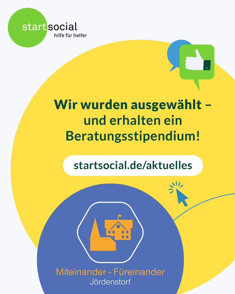Das Quartiersprojekt „Miteinander - Füreinander Jördenstorf“ wurde als eines von 100 sozialen Projekten in Deutschland für ein startsocial-Stipendium 2025 ausgewählt.