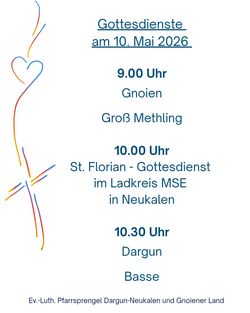 VeranstaltungGottesdienst Groß Methling 10.05.2026 · 09:00 Uhr · 10:00 Uhr Dorfkirche Groß Methling Groß Methling17159 Dargun Im Kalender speichern (.ics) Route berechnen zurück zur Übersicht der Veranstaltungen StartseiteGottesdienste und VeranstaltungenRadwanderkirche SchorrentinGruppen und KreiseBesuchsdienstGemeindebriefeFriedhofKontakt und MitarbeitendeAnmelden