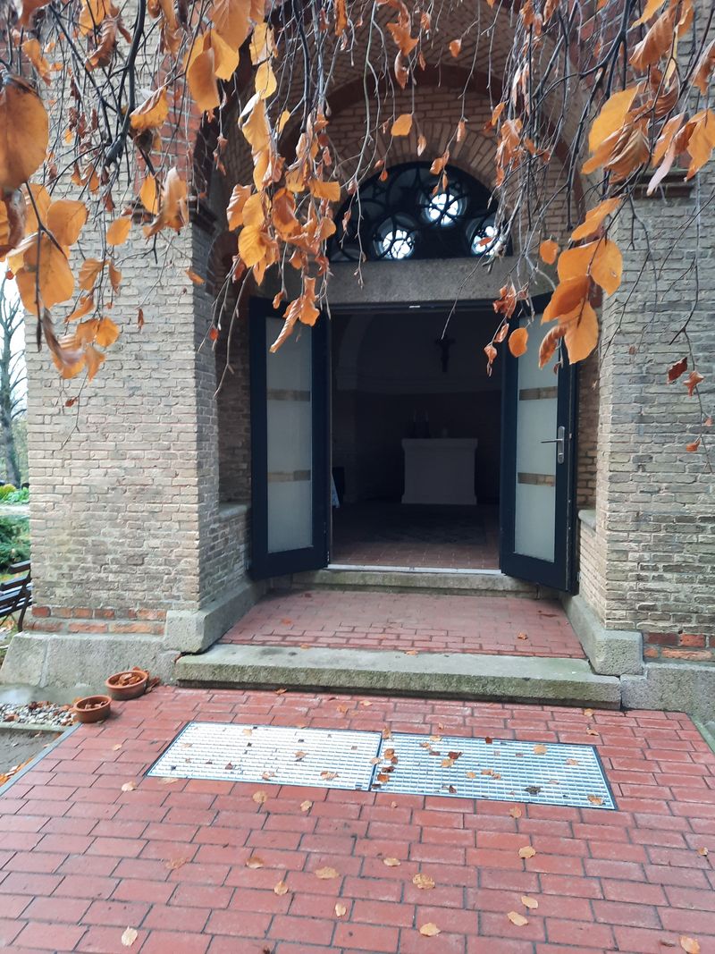 Das neu gestaltete Kolumbarium bietet 32 Urnenplätze bei einer Ruhezeit von 25 Jahren und kann auch als Raum für kleinere Trauerfeiern oder Abschiedsnahmen genutzt werden.