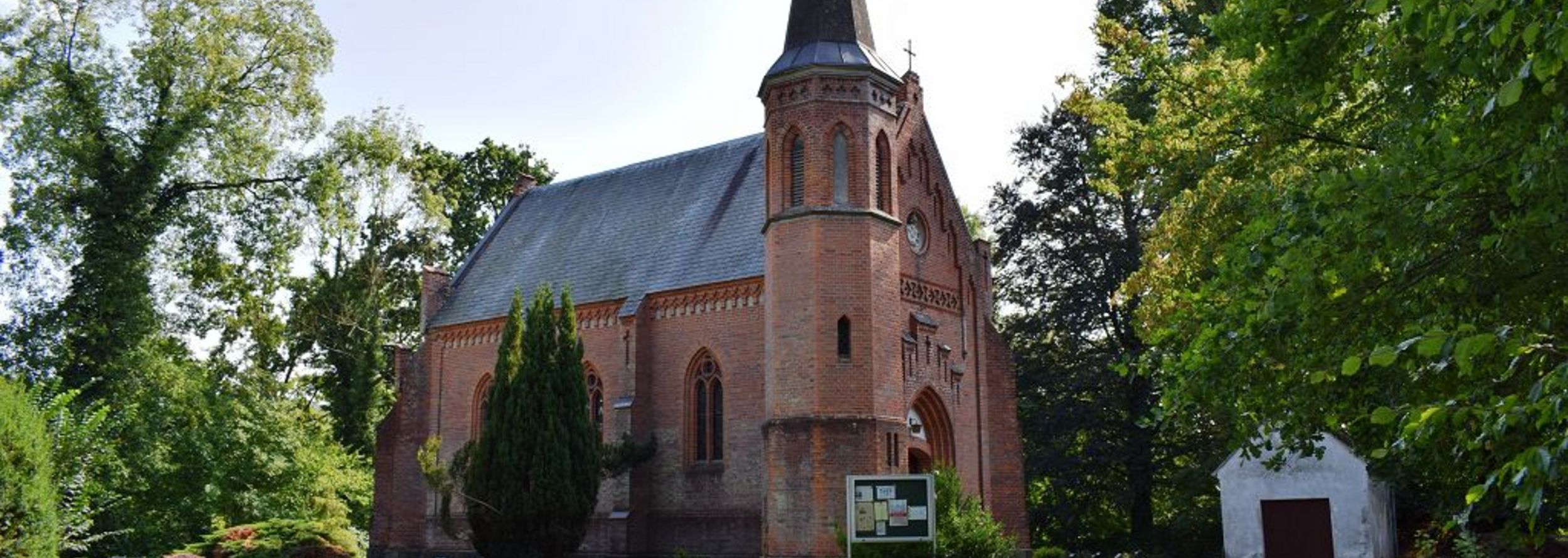 Man muss schon etwas genauer suchen, um die kleine Kapelle im neugotischen Stil auf dem Hügel mit Wall, Wassergraben und dem Petrus davor zu finden. Doch wer sie entdeckt, wird beeindruckt sein. Die Gutskapelle aus dem Jahre 1859 hatte schon einige Vorgängerbauten und gehört zur Kirchengemeinde Neuenkirchen. Die Kapelle ist geprägt von ihren Erbauern, der damaligen Gutsfamilie von Treuenfels, und diente als Grablege der Gutsfamilie und als Gotteshaus für die Gemeinde.