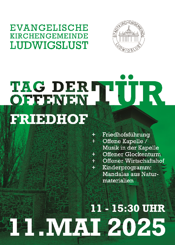 Seit dem 1.8.2024 bietet der Friedhof der Ev.-Luth. Stadtkirchengemeinde in Ludwigslust neben Rasengräbern, Gemeinschaftsgräbern und den klassischen Erd- oder Urnenwahlgräbern auch Baumgräber an. Am Fuße eines neu gepflanzten Baumes können Gräber für zwei Urnen erworben werden. Die Baumscheibe ist mit Gehölzen, Gräsern und Stauden bepflanzt. Die Baumgräber werden für mindestens 20 Jahre erhalten und gepflegt.