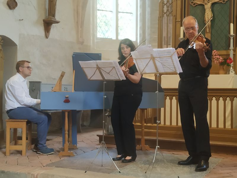 Zu einem Kammerkonzert in der Stadtkirche Fürstenberg am Sonntag, den 20. Juli 2025 wurde herzlich um 18.00 Uhr eingeladen. Der Grevesmühlener Kantor Michael Goede (Cembalo) spielten zusammen mit Elke und Wolfgang Fabri (Violinen) Werke aus der Barockzeit, also dem 17. und 18. Jahrhundert. Werke von Vivaldi, Orschler, Solnitz, Hasse und Pachelbel erklangen.