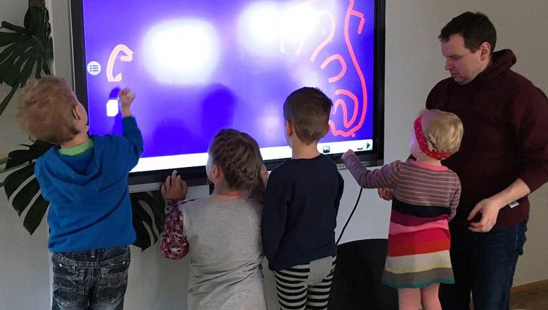 » Gestalten von Mosaiken an Tafeln und einer magnetischen Wand im Raum