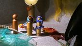 Die Schüler_innen, die mit ihrem Lehrer Dany Ringhand aus dem Förderzentrum Danziger Straße in Rostock Lütten Klein gekommen sind, können sich in dieser GeschichtenWerkstatt in beide Seiten hineinversetzen. Einerseits ist es für sie eine alltägliche Erfahrung, die Welt in rivalisierenden Gruppen zu erleben; andererseits zeigt sich beim Gestalten und im Austausch eine Ahnung davon, diese Teilung zu überwinden. Wie Jesus mit der Heilung des Blinden den Menschen die Augen für die Weite GOttes öffnete, so entdecken das diese Jungen und Mädchen im freien Spiel: beim Bauen an einem hohen Funkturm, von dem man aus alles überblicken kann oder in der Rechenzentrale, wo alle Informationen zusammenlaufen, oder im Zeichnen einer schönen, vereinten Welt. - "Das beginnt in mir.", sagte eine Schülerin und ist damit dem Anliegen der Geschichte ganz dicht auf die Spur gekommen... (mf)