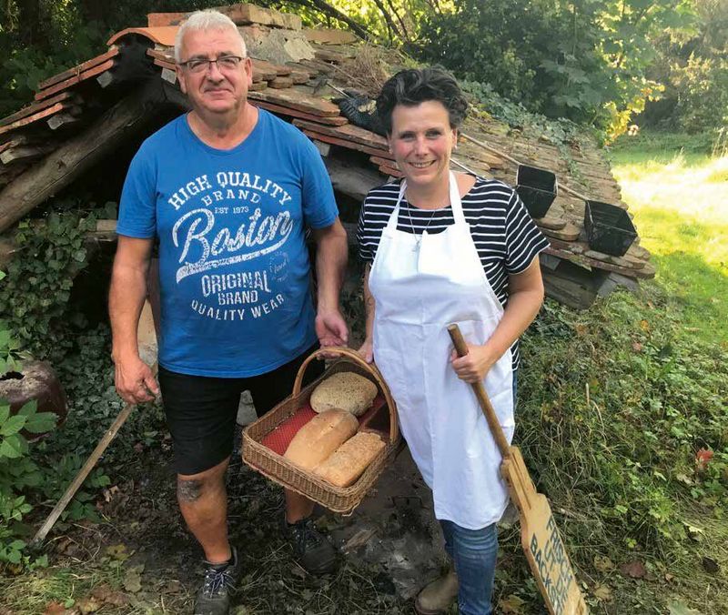 Schon Tage zuvor hatte Bernd Stein den alten Brotbackofen mit viel Geduld angeheizt, damit am Festtag alles bereit war. Unter der fachkundigen Anleitung von Anne Brien, gelernte Bäckerin, wurden Teige geknetet, geformt und schließlich gemeinsam in den Ofen geschoben. Zwischendurch gab es Kaffee und Kuchen und das gemütliche Beisammensein lud zum Plaudern und Lachen ein.