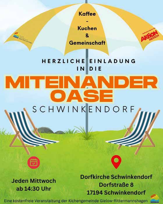 Jeden Mittwoch ab 14:30 Uhr laden wir herzlich nach Schwinkendorf ein.