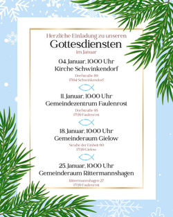 VeranstaltungGottesdienst 25.01.2026 · 10:00 Uhr · 11:00 Uhr Pfarrhaus Rittermannshagen2717139 Faulenrost Im Kalender speichern (.ics) Route berechnen zurück zur Übersicht der Veranstaltungen StartseiteGottesdienste und VeranstaltungenGemeindebriefe20252024202320222021GemeindelebenAktuellesRückblickeProjekteTermineVereine und InitiativenKommune BasedowKommune FaulenrostKommune GielowKommune MoltzowKommune PeenehagenKommune ZetteminKirchen - Bilder und InformationenKirche Alt SchönauKirche BasedowKirche DuckowKapelle GessinKirche GielowKirche Groß GievitzKirche LansenKirche RambowKirche RittermannshagenKirche SchwinkendorfWüstekirche DomherrenhagenKirche ZetteminFriedhöfeSpenden und UnterstützenSchutz und BeratungSchutzkonzept gegen sexualisierte GewaltKontakt und MitarbeitendeAnmelden