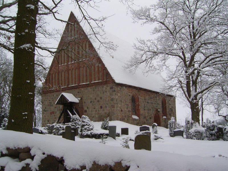 Sie ist ein frühgotischer Feldsteinbau in Form eines länglichen Vierecks.