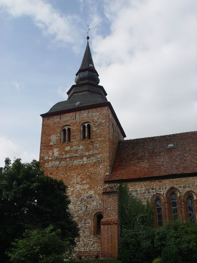 Alt Schloen liegt etwa 8 km nordöstlich von Waren. Die äußerliche Trutzigkeit des Feldsteinbaus, dessen ältesten Teile mit den frühgotischen Dreifenstergruppen noch aus der zweiten Hälfte des 13. Jahrhunderts stammen, wird durch die geschweifte barocke Turmhaube etwas gemildert. Zu den Besonderheiten des Baus gehört ein im Sockelbereich der Chornordwand verbauter großer alter Mühlstein. Die Mittelstütze im Innern des Schiffes wurde nachträglich eingefügt, weil man wohl dem hohen Gewölbe nicht mehr traute.