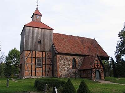 Die Feldsteinkirche stammt aus dem 13. Jahrhundert. Im Jahre 1594 brannte die Kirche ab. Auf das stehen gebliebene Gemäuer wurde 1685 eine flache Balken- und Bretterdecke gelegt und das Dach oben aufgesetzt.