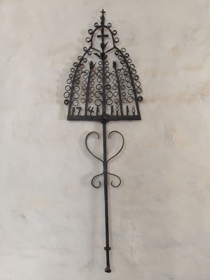 An der Südwand sind drei handgeschmiedete Grabkreuze vom Friedhof befestigt, über 100 Jahre alt. Ein Grabkreuz ist als Tulpenbaum gestaltet.