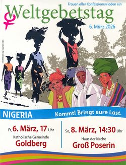 Wir laden Euch herzlich ein, mit uns den Gottesdienst zum Weltgebetstag 2026 zu feiern. In diesem Jahr wurde die Liturgie von den Frauen aus Nigeria vorbereitet – dem bevölkerungsreichsten Land Afrikas, vielfältig, dynamisch und voller Kontraste. Nigeria beeindruckt durch seine kulturelle und religiöse Vielfalt, steht aber auch vor sozialen, ethnischen und spirituellen Herausforderungen.