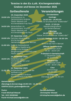 ansehen herunterladen ansehen herunterladen ansehen herunterladen StartseiteAktuell mit PfarrstellenausschreibungGottesdienste und VeranstaltungenVeranstaltungenProgramm Dezember 2025Schutzkonzept/PräventionSonderausstellung zur Erinnerung an den Stadtbrand vor 300 JahrenGruppen und KreiseGemeindebrief aktuell und ArchivFriedhofKontakt und MitarbeitendeAnmelden
