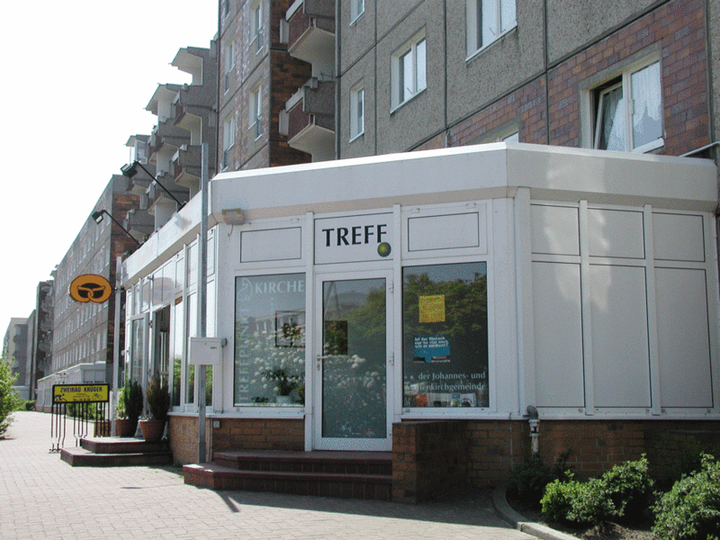 In der Lomonossowallee 55 hat die Johannesgemeinde bis zum 31.12.2024 zusammen mit der Gemeinde St. Marien den "TREFFpunkt" Kirche eingerichtet. Dort finden Gottesdienste statt, treffen sich Gruppen und auch Beratungsangebote des Kreisdiakonischen Werkes.