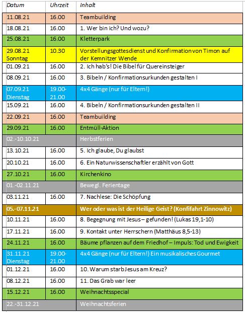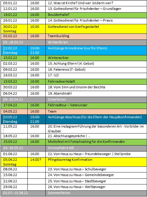 Konfikurs steht für: Gott auf die Spur kommen, Action, Themen, Gemeinschaft, Fahrten, Spiele, Gestalten und ein Team, das sich auf euch freut.