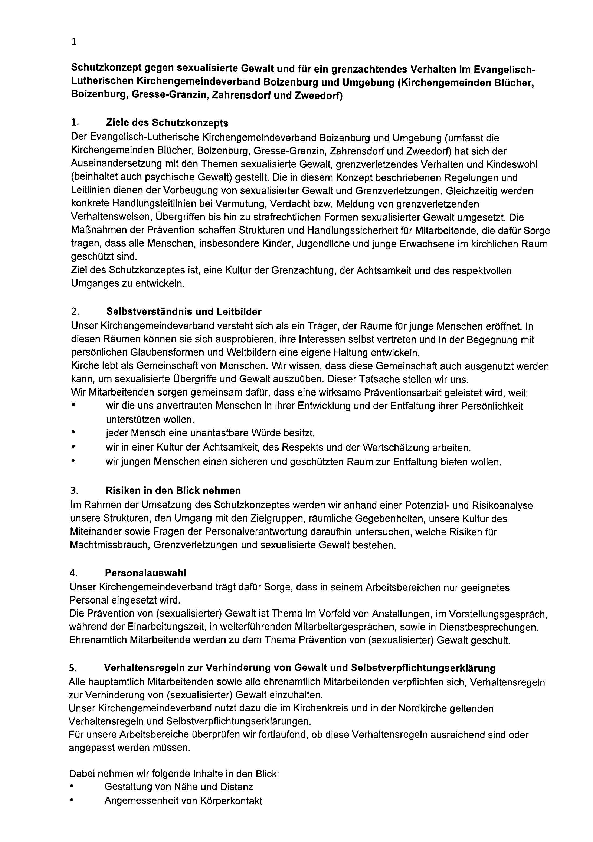 Schutzkonzept gegen sexualisierte Gewalt und für ein grenzachtendes Verhalten im Kirchengemeindeverband Boizenburg und Umgebung (Präventionskonzept)