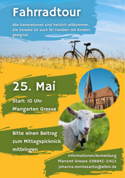 Wir machen uns gemeinsam auf den Weg. Start ist um 10 Uhr am Pfarrhaus in Gresse. Bitte ein Mittagspicknick mitbringen. Alle Generationen sind herzlich willkommen. Die Strecke ist auf für Familien mit Kindern geeignet.