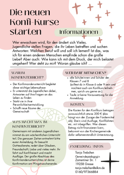 Wer Intresse am Konfiunterricht oder Fragen zur Konfirmation hat, kann sich gerne bei Tanja Trebchen oder bei Pastorin Johanna Montesanto melden.
