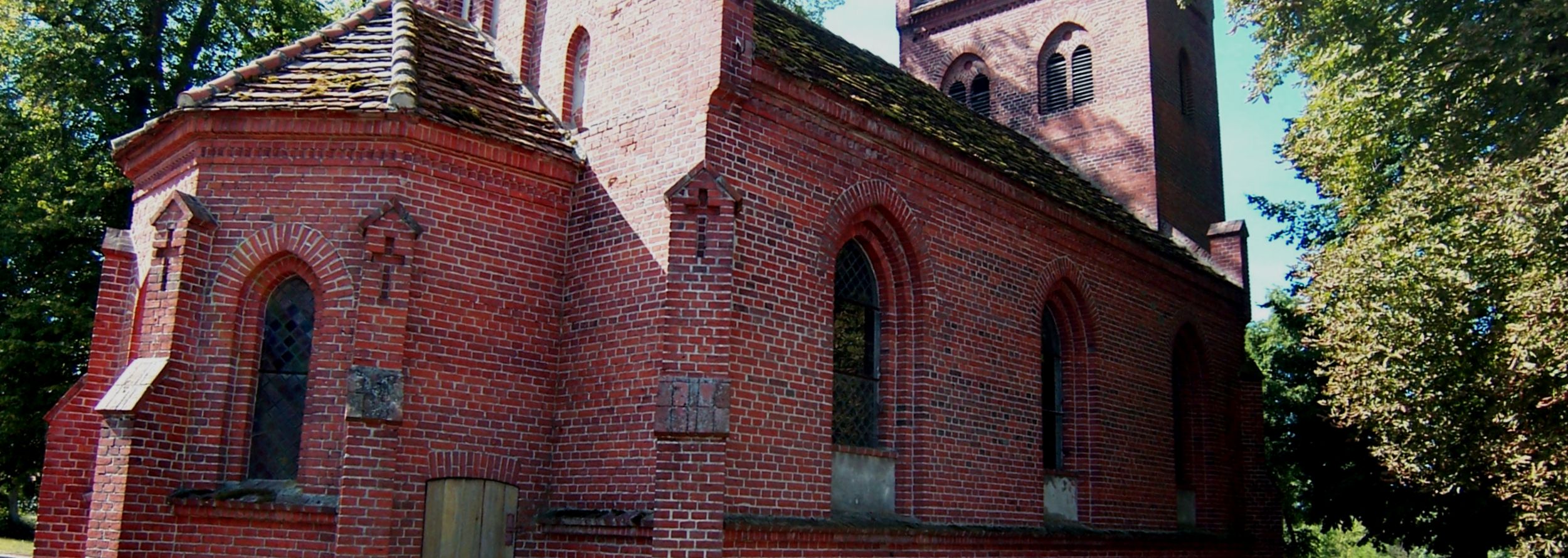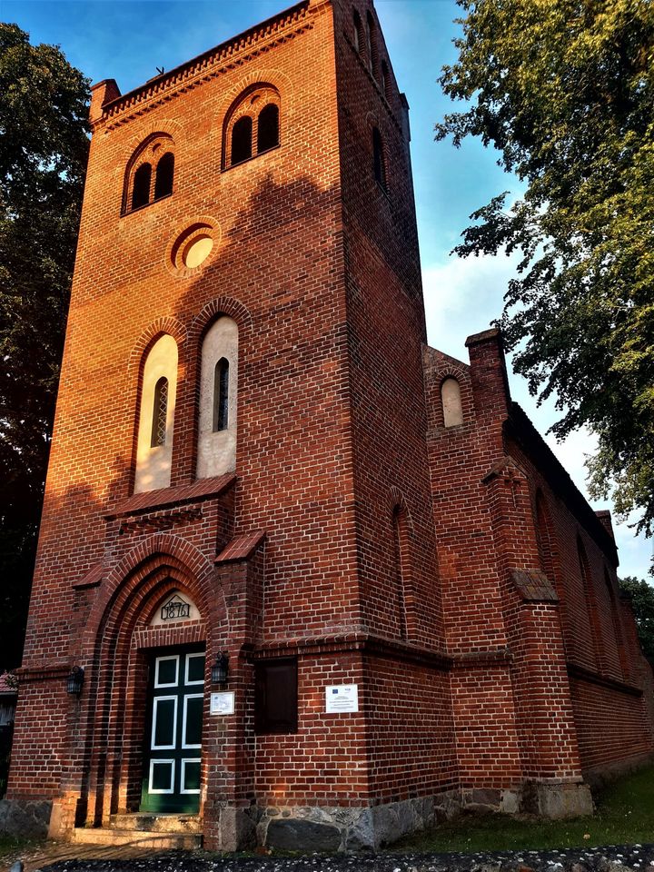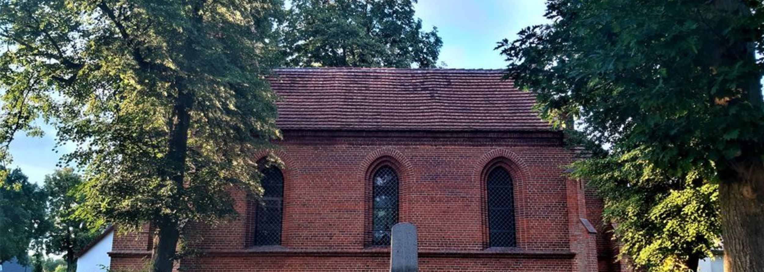 Der neugotische Ziegelbau mit polygoner Chorapsis und querrechteckigem Westturm mit Stufenportal in Vorlage wurde 1876 anstelle eines mittelalterlichen Vorgängerbaus errichtet. Die Kirche stand zu ihrer Bauzeit unter dem Patronat des Klosters Stepenitz in Preußen.