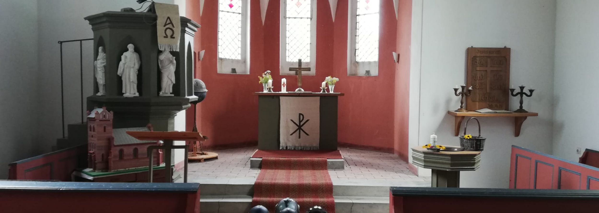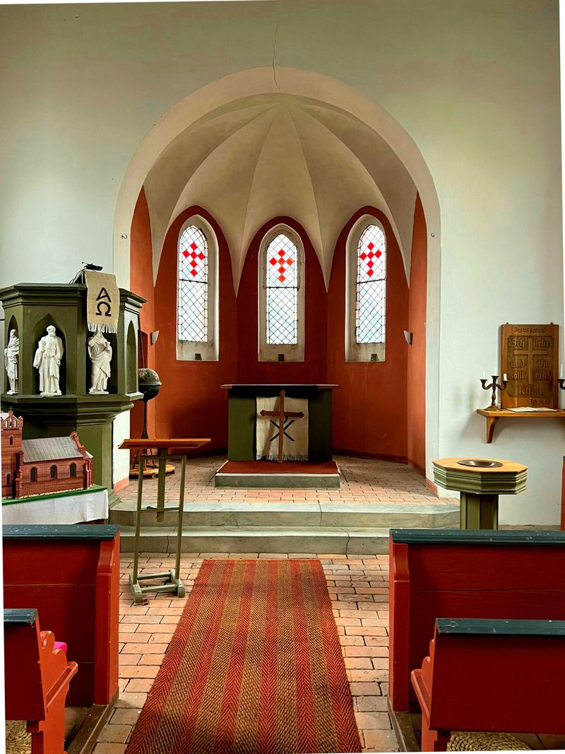 Die Chorapsis ist mt einem Gewölbe überzogen, das Langhaus ist flachgedeckt.