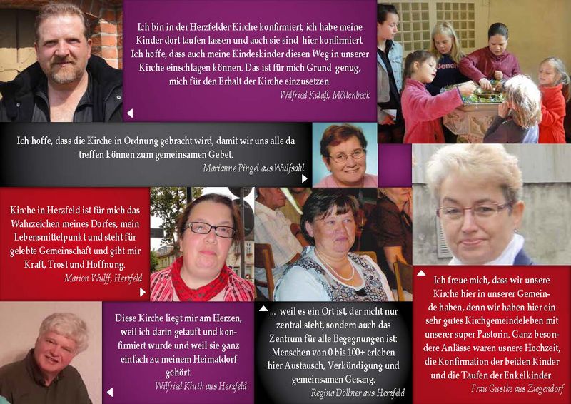 Große Aufgaben stehen vor der Kirchengemeinde: die Herzfelder Kirche muss renoviert werden. Risse in der Fassade, Feuchtigkeit auf dem Dachboden und völlig vermoderte Balken machen diesen Kraftakt notwendig. In einem ersten Schritt müssen der Dachstuhl, die Dachdeckung und der Westgiebel (die Seite, an der der kleine Vorbau mit Eingangstür steht) instand gesetzt werden.