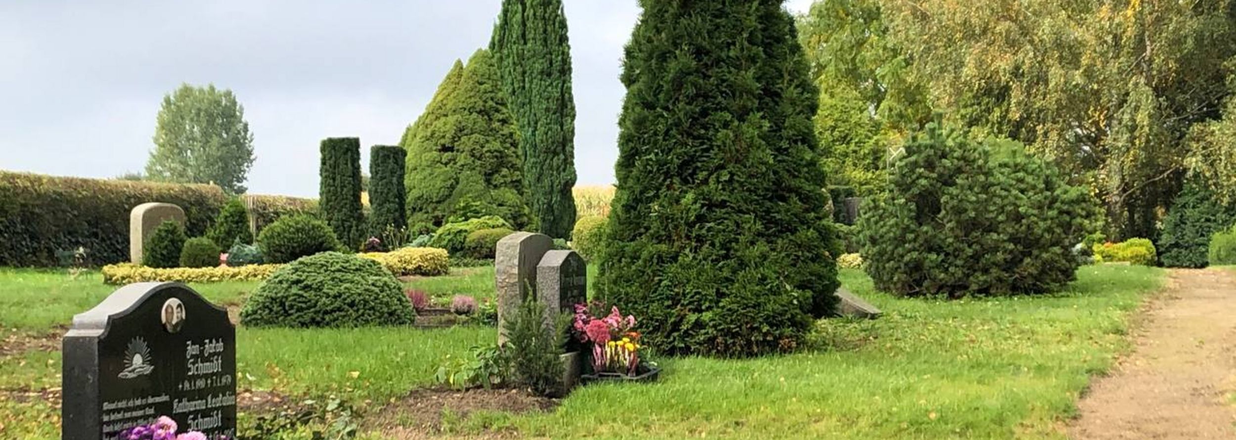 Derzeit bieten wir auf unserem Friedhof Grabplätze für Erdbestattungen (Sarg) in Einzel- und Mehrstelligen Gräbern an. Urnenbestattungen sind auf Einzelgräbern oder auf Urnengemeinschaftsanlagen möglich, aber auch als Baumbestattung.