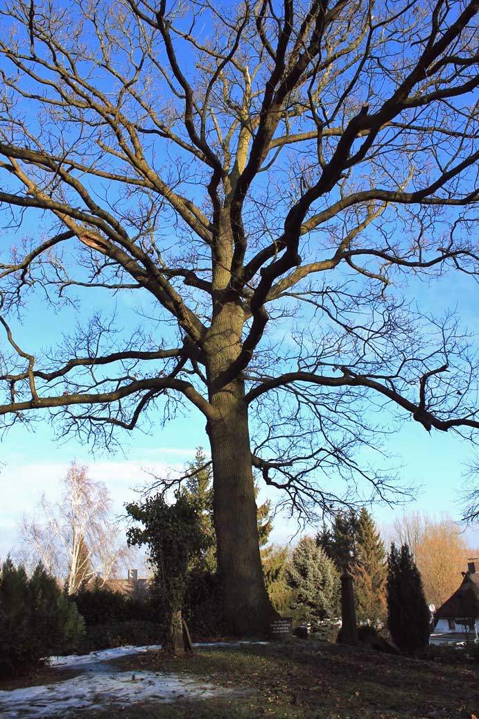 Hierzu wurde eine prächtige Eiche ausgewählt – siehe Bild rechts -, die für diese friedvolle Ruhestätte im Sommer einen breiten Schatten spendet. Die Urne wird in direkter Nähe des Baumstammes beigesetzt und die Grabstätte mit einer kleinen Steinplatte auf einem Sockel mit den Namensdaten gekennzeichnet.