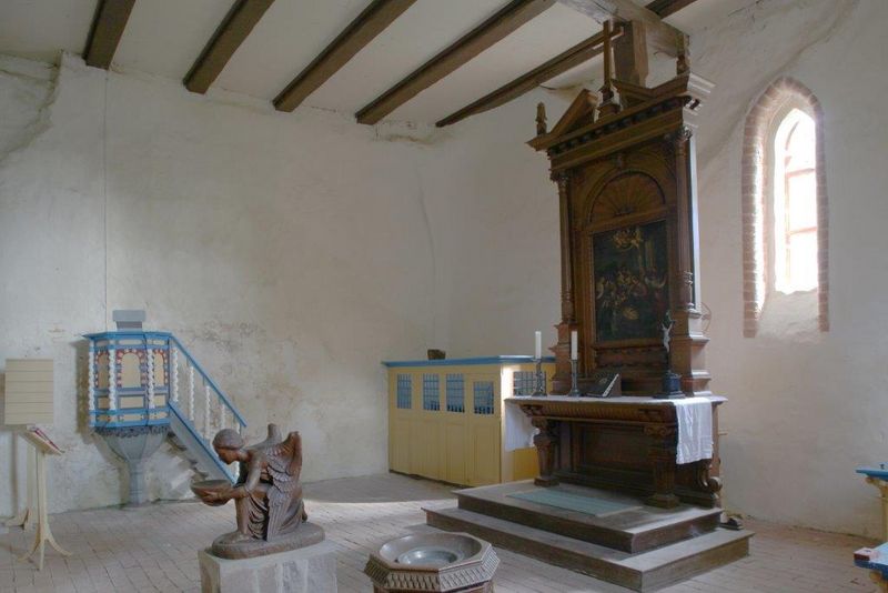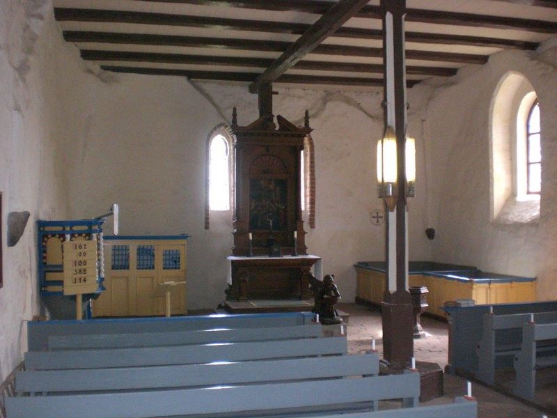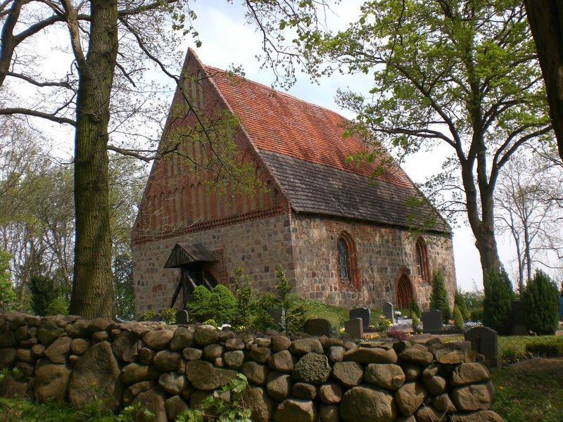 Sie ist ein frühgotischer Feldsteinbau in Form eines länglichen Vierecks.
