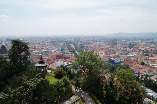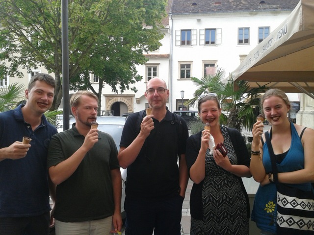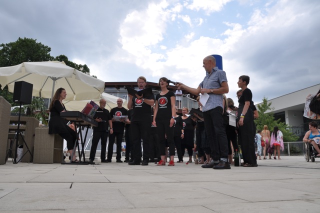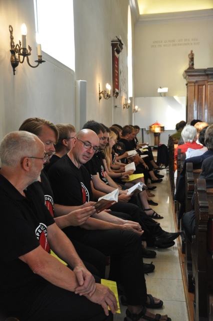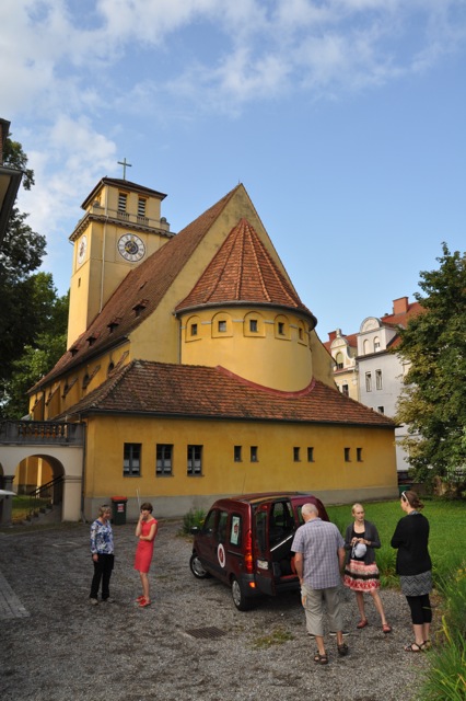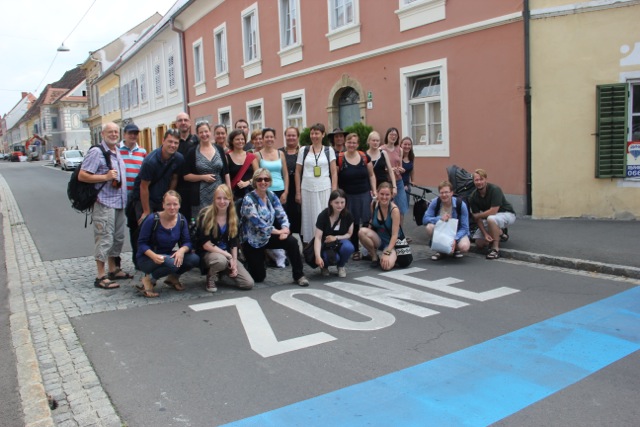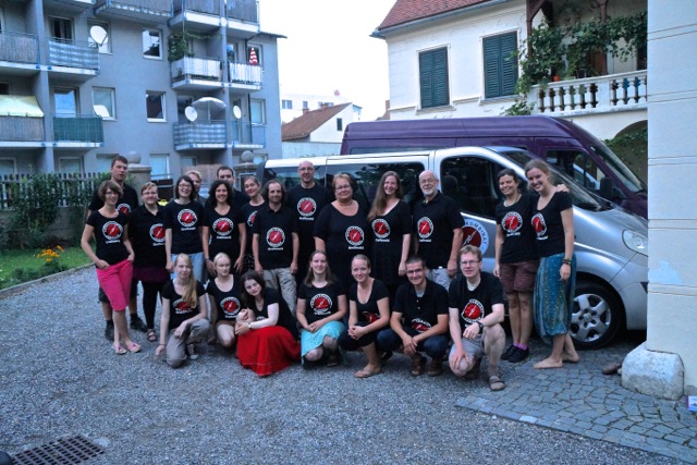 Julia Eberspach: 15 Stunden Autofahrt bzw 20 Stunden Zugfahrt von der Heimat entfernt hat sich das Gospelkombinat heute zum Beginn der diesjährigen Auslands-Konzerttour in Graz, der Heimatstadt der Chorleiterin getroffen. Nach einem ausführlichen Stadtrundgang mit Eis, Sehenswürdigkeiten und Shopping-Tipps fand am Nachmittag ein internationaler Gospelworkshop mit deutschen und österreichischen Teilnehmern statt, die aus Wales, Iran, Rumänien, Österreich und Deutschland angereist sind. Die einstudierten Stücke sind Bestandteil des sonntäglichen Gottesdienstes in der Grazer Kreuzkirche, die für die nächsten Tage das Probendomizil für das Gospelkombinat sein wird.