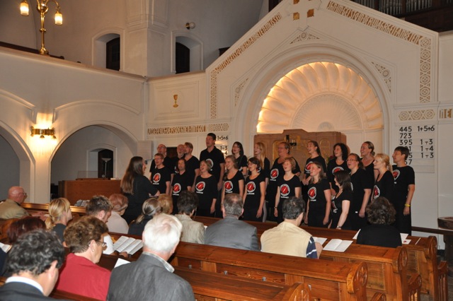 Was Sie bei einem Konzert des Gospelkombinats erwartet? Klassische Gospels und Spirituals wie zum Beispiel "Go tell it on the mountain" nehmen nur einen kleinen Platz in unserem Repertoire ein. Der Großteil der Stücke ist im Eigenbau entstanden - ein Gospel-Kombinat produziert natürlich auch! Einige Lieder afrikanischer Herkunft, amerikanische Worship Songs und neuerdings auch ein vereinzeltes italienisches Stück vervollständigen den musikalischen Bogen. Viele verschiedene Stimmungen sind zu finden, nachdenklich und überschwänglich, klagend und freudig, laute und leise Töne. Dabei ist es nur in zweiter Linie wichtig, dass die Töne perfekt sitzen - wichtiger ist uns, dass die Stücke inhaltlich den richtigen Ton treffen. Dass uns das immer wieder gelungen ist, davon zeugt ein Satz, den wir nach unseren Konzerten in Rumänien besonders oft gehört haben: "it touched my heart".