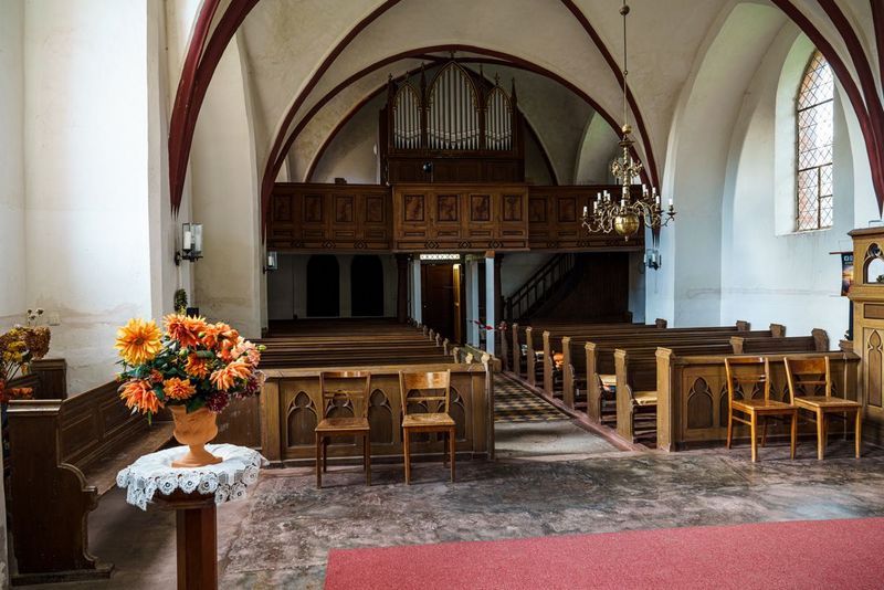 Auf dem Kirchhof befindet sich ein freistehender Glockenstuhl mit einer Bronzeglocke. Unmittelbar neben der Kirche steht das um 1600 als barocke Dreiflügelanlage errichtete Schloss Schmarsow, dessen Außensanierung weitgehend abgeschlossen ist und das derzeit zu einem anspruchsvollen Ferienhotel mit historischer Möblierung und Raumfarbigkeit hergerichtet wird. Einen Kirchenschlüssel bekommen Sie im Dorf bei Frau Gisela Triphan, Dorfstraße 19 oder Frau Gabriele Kelch, Dorfstraße 71.