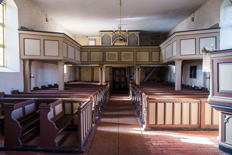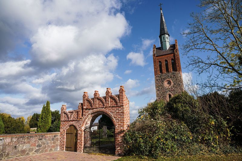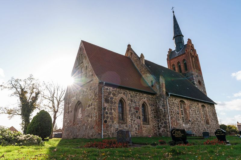 Ebenfalls zu beachten: Das zweiteilige Friedhofsportal in eigenwilligen Formen mit Türmchen und Viertelkreisblenden. Einen Kirchenschlüssel bekommen Sie im Dorf bei Frau Christiane Götte, Dorfstraße 6.