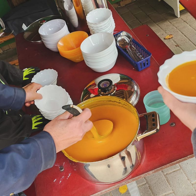Nach getaner Arbeit wartete eine wohlverdiente Stärkung auf alle Helferinnen und Helfer: Die Erzieherinnen hatten warme Suppen gekocht, und es gab Kaffee oder Tee mit selbstgebackene Kuchen. In gemütlicher Runde konnten wir den Nachmittag gemeinsam ausklingen lassen und auf das Erreichte stolz sein.