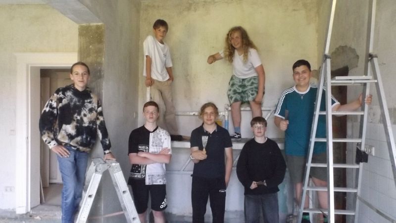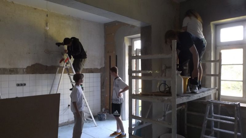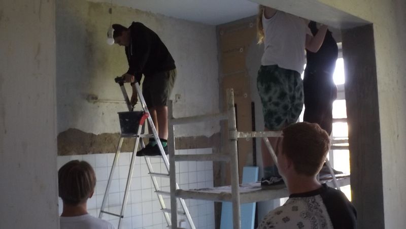 Die Konfirmanden helfen bei der Renovierung der Wohnung für den 2. Pastor im Kirchspiel
