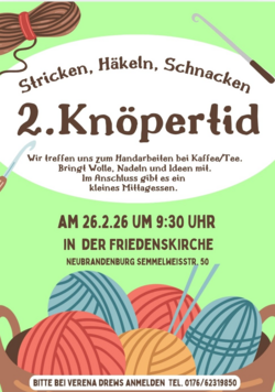 Wir treffen uns zum Handarbeiten bei Kaffee/Tee. Bringt Wolle, Nadeln und Ideen mit. Im Anschluss gibt es ein kleines Mittagessen.