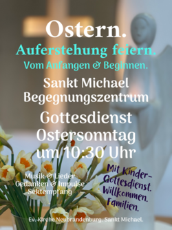 Osterfestgottesdienst, Ostersonntag. Mit KinderGottesdienst. Familien willkommen. Im Anschluss Sektempfang