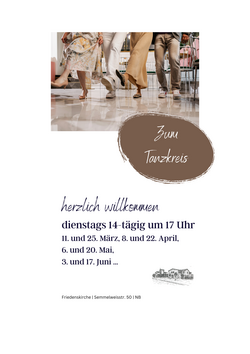 Herzliche Einladung an alte Hasen und junge Hüpfer, das Tanzbein in der Friedenskirche zu schwingen, in der Zeit von 17:00 - 18:30 Uhr.