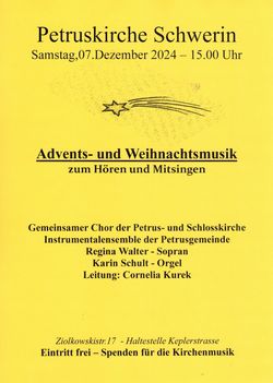 VeranstaltungAdventsmusik zum Hören + Mitsingen 07.12.2024 · 15:00 Uhr · 16:00 Uhr Gemeindezentrum PetrusgemeindeZiolkowskistraße 1719063 Schwerin Im Kalender speichern (.ics) Route berechnen zurück zur Übersicht der Veranstaltungen StartseiteGottesdienste und VeranstaltungenMusikChöre/EnsemblesGemeindelebenKinder und FamilienKonfirmanden und JugendErwachseneEhrenamtTaufe Trauung Eintritt BeerdigungOffene KircheSeelsorge und BeratungKirchengemeindenKontakt und MitarbeitendeAnmelden