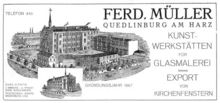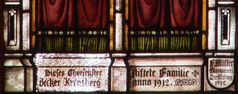 Auf der Südostseite des Chorpolygons schließt sich das Auferstehungsfenster an. „Dieses Chorfenster stiftete Familie Becker Kronsberg anno 1912.“ Rechts daneben entdeckt man das Schild mit dem Namen der im Jahre 1867 gegründeten Firma F. Müller, Glasmalerei Quedlinburg. Ferdinand Müller (1848-1916) führte seinerzeit eine der bedeutendsten Produktionsstätten von Glasmalerei in Deutschland. Glasmalereien aus Quedlinburg waren weit über die Grenzen des Reiches hinaus gefragt.
